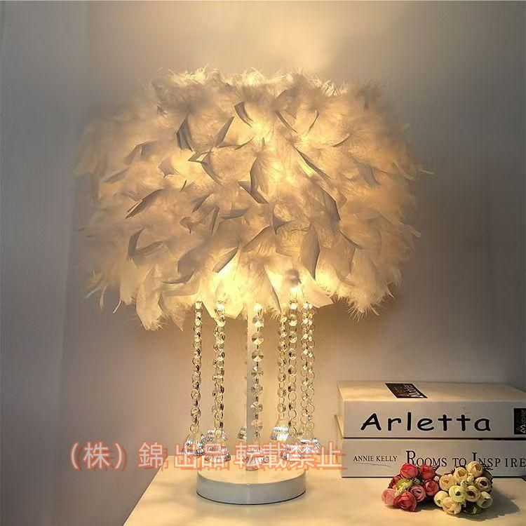 ■Sサイズ ベッドサイドランプ 卓上ライト スタンドライト デスクライト株式会社錦 北欧 羽毛 水晶 テーブルライト モダン ナイトスタンド