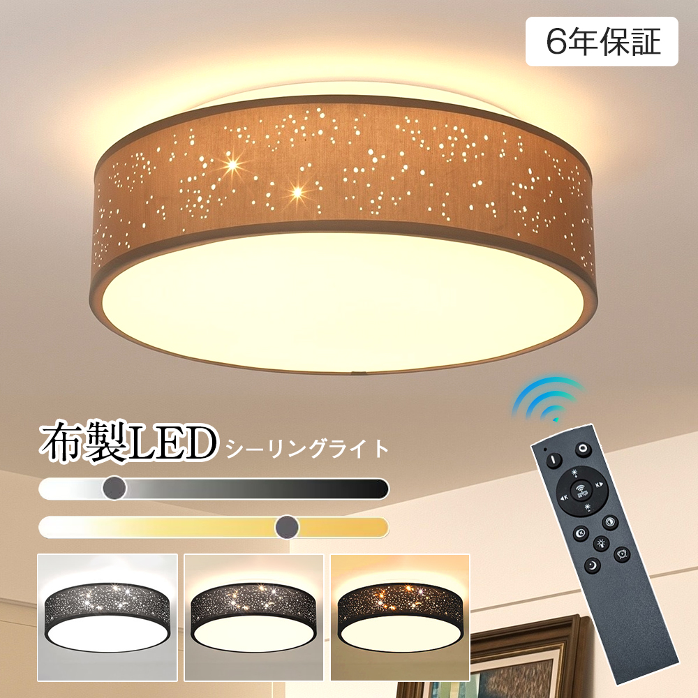 ■シーリングライト LED 6畳 8畳 調光調色 リモコン おしゃれ 布製 モダン インテリア 間接照明 天井照明 リビング照明 居間ライト 和室 寝
