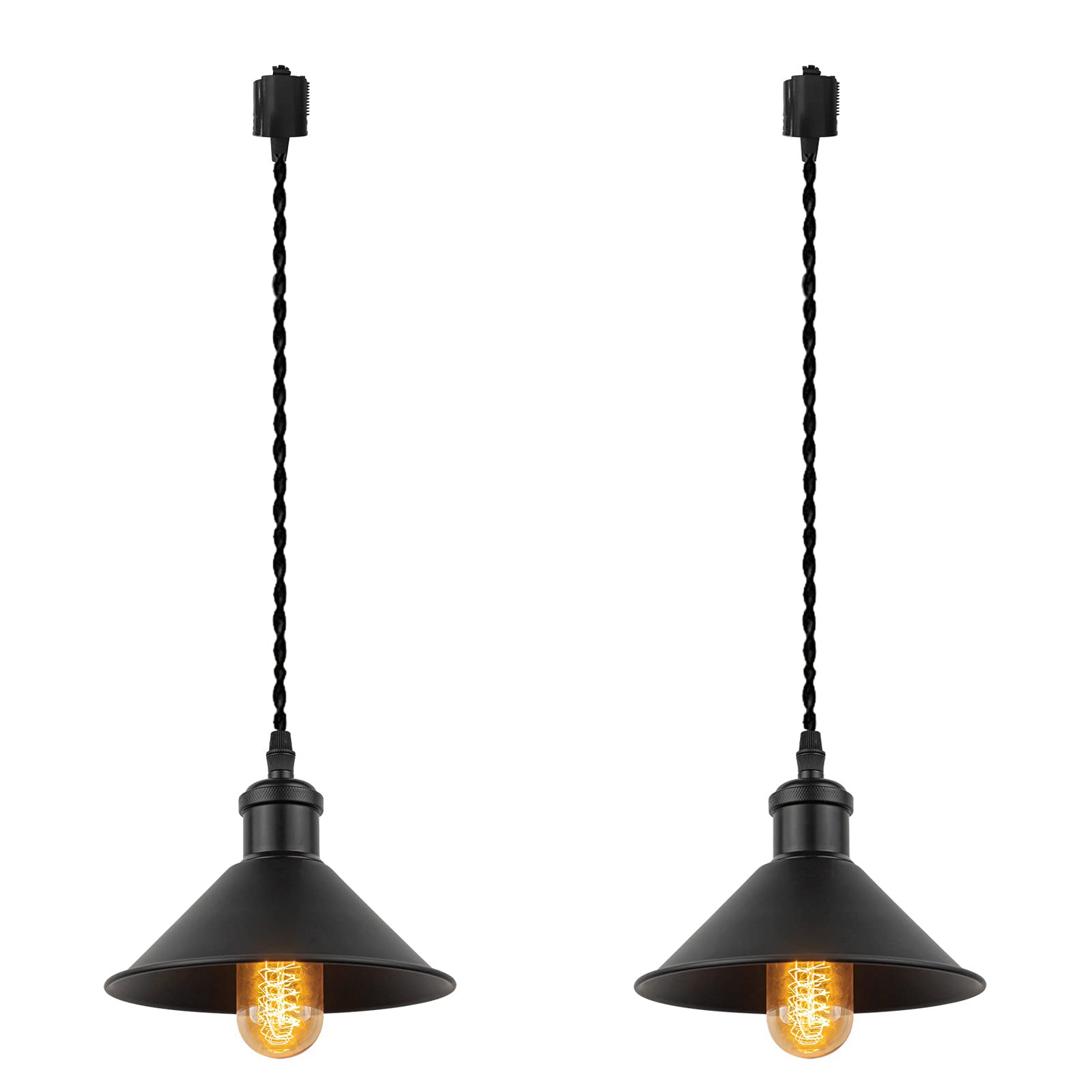 ■FSLiving 2個パック ペンダントライト マットブラックソケット かわいいダクトレールライト 北欧 おしゃれ アンティーク モダン レトロ