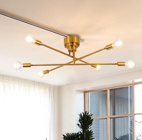 ■シーリングライト 6灯 真鍮 LED スポットライト E26 天井照明 北欧 角度調節可 モダン ペンダントライト おしゃれ 寝室 リビング照明 電
