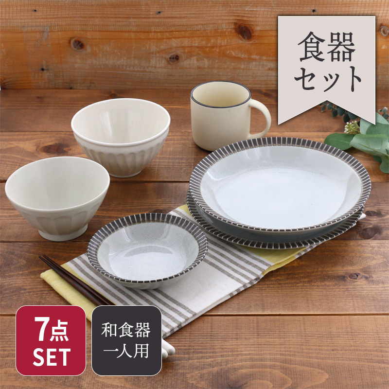 セット内容 お茶碗 マグカップ パスタ・カレー皿 ボウル プレート L どんぶり 箸 商品詳細 茶碗 マグカップ どんぶり パスタ・カレー皿 ボウル プレート L 上記全て 素材/磁器 生産地/日本(美濃焼) 電子レンジ・食洗機可 オーブン・直火不可 箸 素材/天然木 生産地/日本 家庭用食洗機・乾燥機可 ご注意 ※濃淡、釉薬の垂れ、鉄粉、ピンホール(針で突いたような小さな穴)、焼成ごとに色味に個体差が見られる商品です。 ※釉薬の性質上、縁のストライプ部分まで釉薬が入っております。 ※箸先には滑り止め加工が施してあります。天然木のため、塗の下地の色味に多少の濃淡が見られます。 ※お客様のお使いのモニター設定、お部屋の照明等により実際の商品と色味が異なって見える場合がございます。 ※画像に含まれる小物は使用イメージのために使用しています。 ※不明な点がございましたら、お気軽にお問い合わせ下さい。