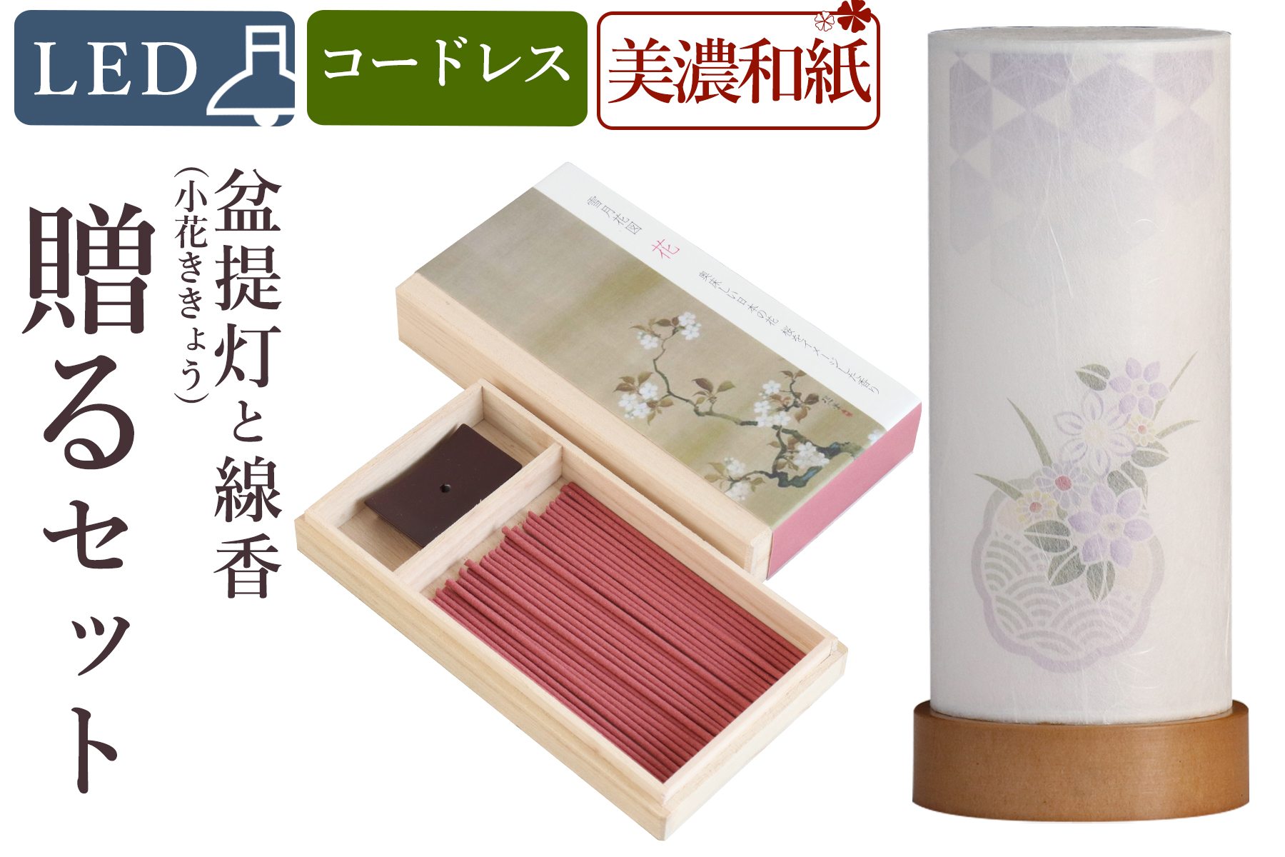 ■盆提灯 初盆 新盆 モダン 仏具 線香 贈る セット 花 夏あかり・岐阜シリーズ 小花ききょう 美濃和紙 電池式 コードレス LED ミニ 小型 和