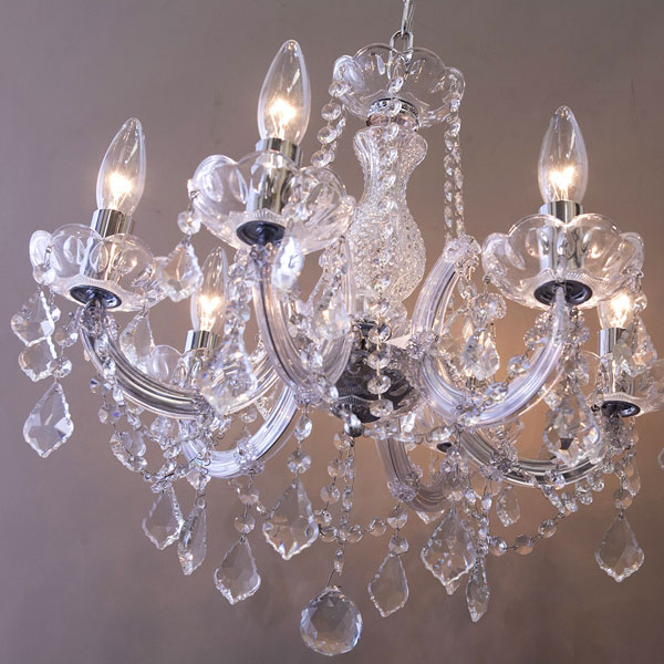 上品な輝きのクリスタルガラスシャンデリアです(6灯) クリスタルクリアーとシャンパンゴールドの2色展開でお部屋に合わせて選べます。 照明が変わるだけでお部屋の印象がガラリと変わります。 寝室やダイニング、玄関先などにいかがでしょうか? こちらの商品のビーズには高品質のK-9クリスタルを使用しております。 昼間でも太陽光が当たるとキラキラと輝き、高級感に溢れております。 是非違いを確かめてみてはいかがでしょうか。電球6ケ付き サイズ:約Φ47cmx H.45cm チェーン:約46cm コード:約50cm 重量:3.3kg 電球:E12/40W 6本添付 <最長 約 H97 cm> <最短 約 H60 cm>(開閉式チェーンなので長さ調節が可能) 規格 ■生産地:中国 ■素材・成分: 本体支柱/上下受皿+ソケット受皿:ガラス 装飾パーツ:K-9クリスタルビーズ アーム:アクリル チェーン/ソケットカバー:鉄 シャンデリア お姫様 照明 豪華 ゴージャス アンティーク 天井照明 リビング ダイニング 屋内照明 クリスタルガラスシャンデリア