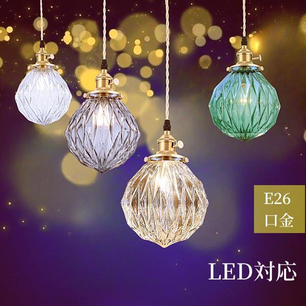 ■ペンダントライト 1灯 LED対応 E26 ダイニング用 食卓用 ガラス かわいい 照明 おしゃれ ライト アンティーク レトロ 北欧 インテリア 天