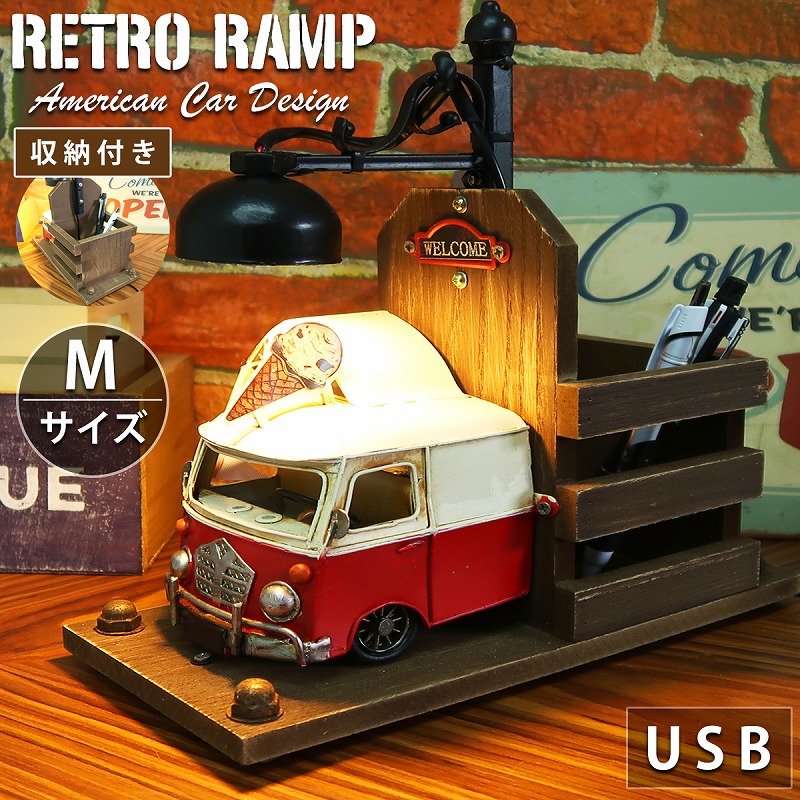 ■テーブルランプ おしゃれ テーブルライト 卓上 照明 アメリカン雑貨 レトロ ワーゲンバス アイスクリームバン デスクライト USB ペン立て