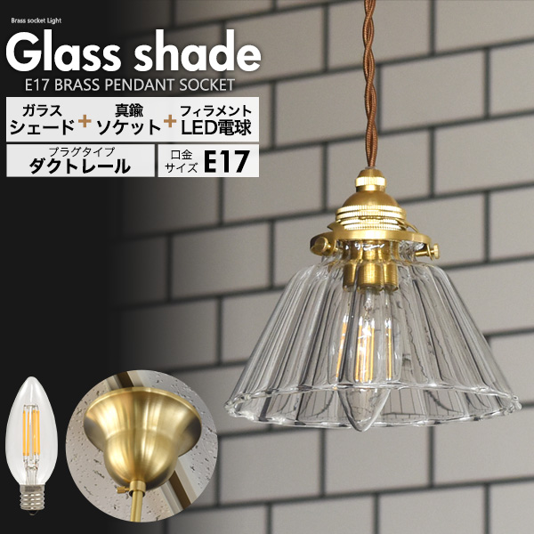 ■照明器具セット E17 シャンデリア電球 ダクトレール 透明 ストライプカット ガラスシェード付属 LEDランプ おしゃれ 照明 吊り下げ照明