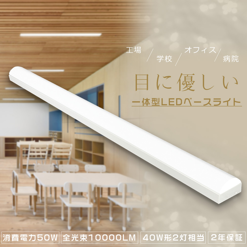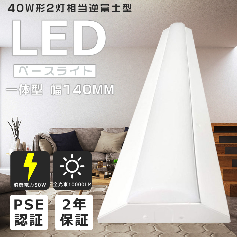 ■【超節電】LEDベースライト 40W 2灯 逆富士型LEDベースライト 消費電力50W 高輝度10000lm LED蛍光灯 器具一体型 一体型照明 天井直付型