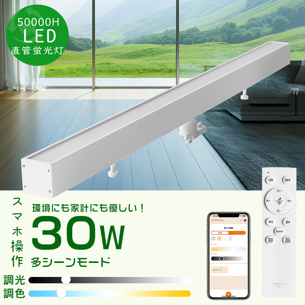 ★★電源配線するだけでそのまま使えます。一体型照明なので、見た目は薄型でスタイリッシュ。天井をすっきりさせ、スペースの節約に役立ちます。★★ 仕様 商品名:LEDシーリングライト 直管型 消費電力:30W 全光束:6000LM 電源:内蔵・電源ユニット内蔵 入力電圧:AC100V/200V 発光色:電球色〜昼光色(3000K〜6000K)無段階調整 照射角度:180° 演色指数(CRI):≧Ra85 設計寿命:50000H 製品サイズ(約):L60cm×W5.5cm×H5.5cm 製品重量(約):0.93kg 保証期間:1年保証