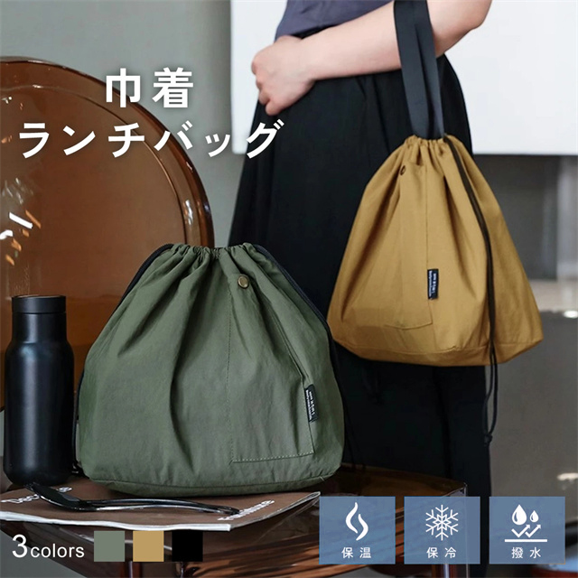 ■冬新作 送料無料 ランチバッグ 保冷ポーチ 弁当袋 巾着バッグ 保冷バッグ 冷蔵トートバッグ スタイリッシュ シンプル 無地 仕事 学校 屋