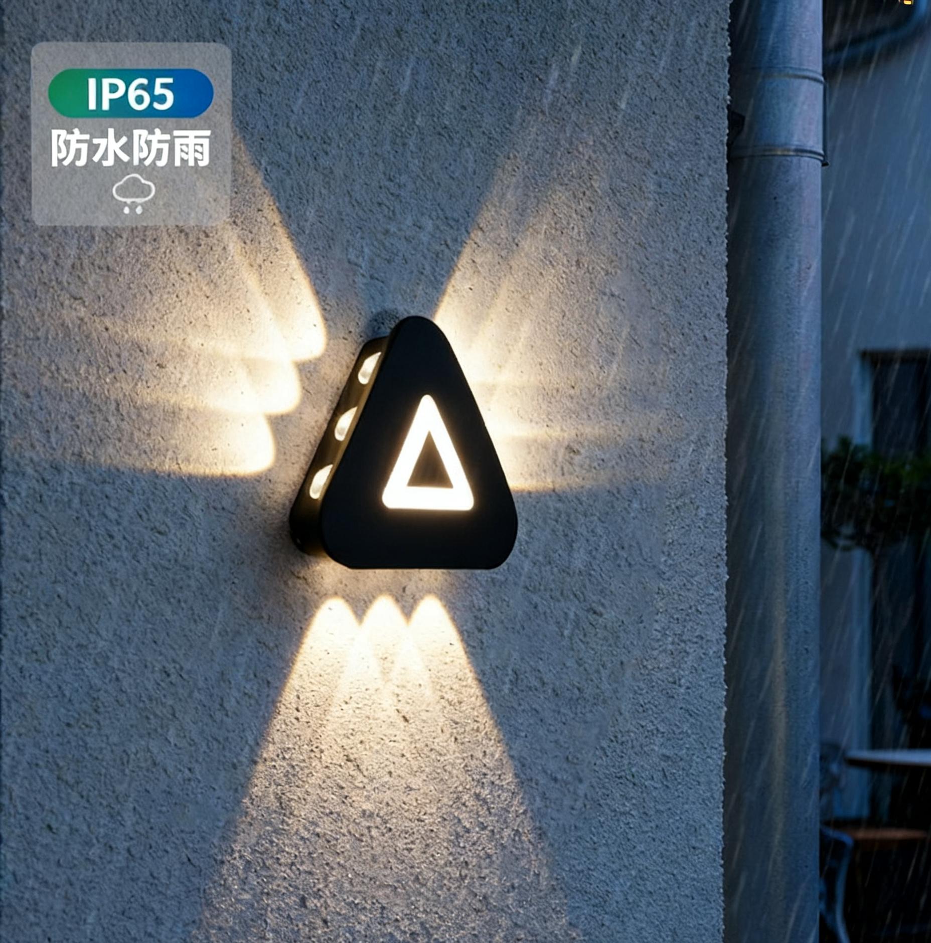 この**LEDウォールライト**は、3つの調光可能なヘッドとIP65防水構造を備えた信頼性の高い**屋外照明**です。24Wの高輝度COB光源と圧鑄アルミ製ボディにより、玄関、門周り、庭園などでの長期的な使用に最適です。モダンなトライアングルデザインが外観を引き立て、省エネかつ長寿命のこの**LEDウォールライト**で、安心でスタイリッシュな夜間照明を実現しましょう。 LED ウォールライト,屋外 照明,防水 ライト,Ledモダンウォールライト,屋外ウォールライトライト