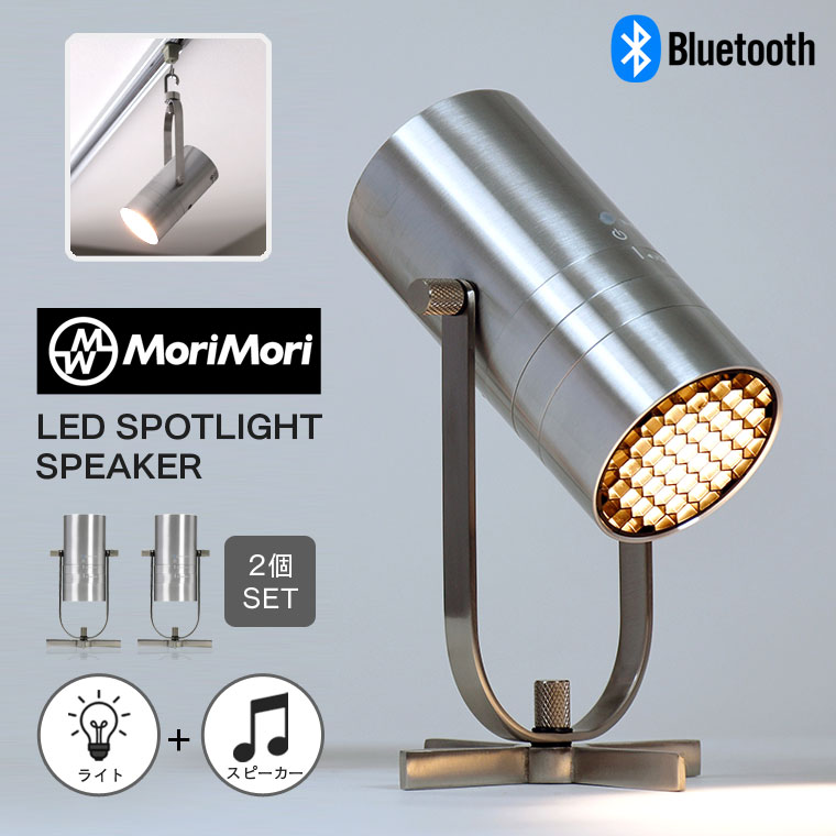 ■【2個セット】MORIMORI LED スポットライト スピーカー Bluetoothスピーカー 一体型 卓上ライト ステレオ再生 吊り下げ対応 調光機能付き