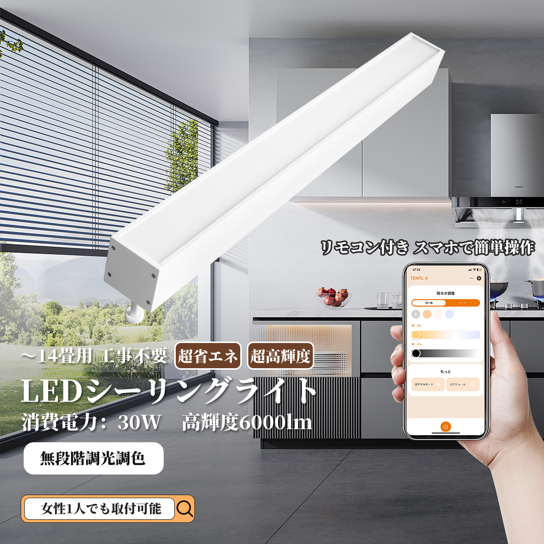 ■シーリングライト 直管形 6畳 調光 調色 薄型 LED タイマー機能 10畳 LEDシーリングライト おしゃれ 明るい 照明 照明器具 リモコン 常夜