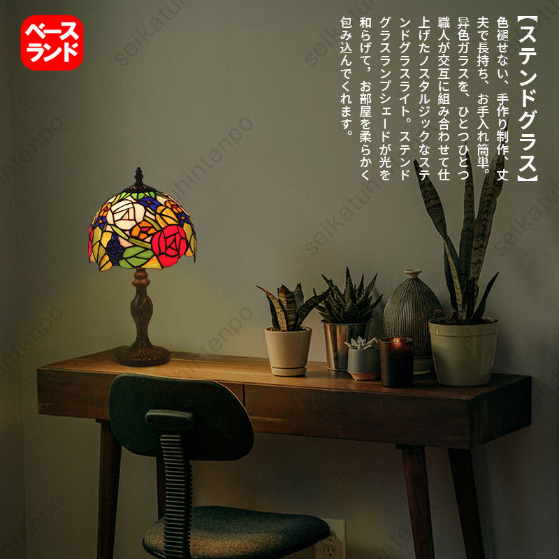 ■ステンドグラス ランプ スタンド照明 レトロ 卓上照明 スタンドライト アンティークカフェ風 照明 常夜灯 1灯