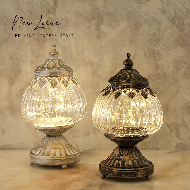 ■New Loire ロワール LED ミニランタン スタンド(アンティーク LEDランタン おしゃれ 電池式 乾電池 レトロ インテリア 照明 卓上照明 卓