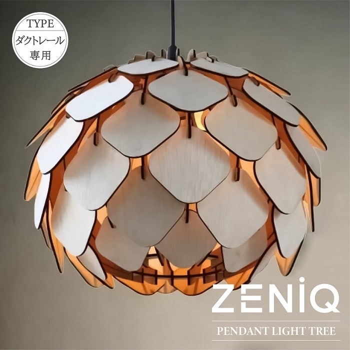 ■照明 ルームライト ZENiQ ゼニック ペンダントライト ツリー ダクトレール専用 1灯 コード長さ調整パーツ付 木製シェード 口金E26 LED対