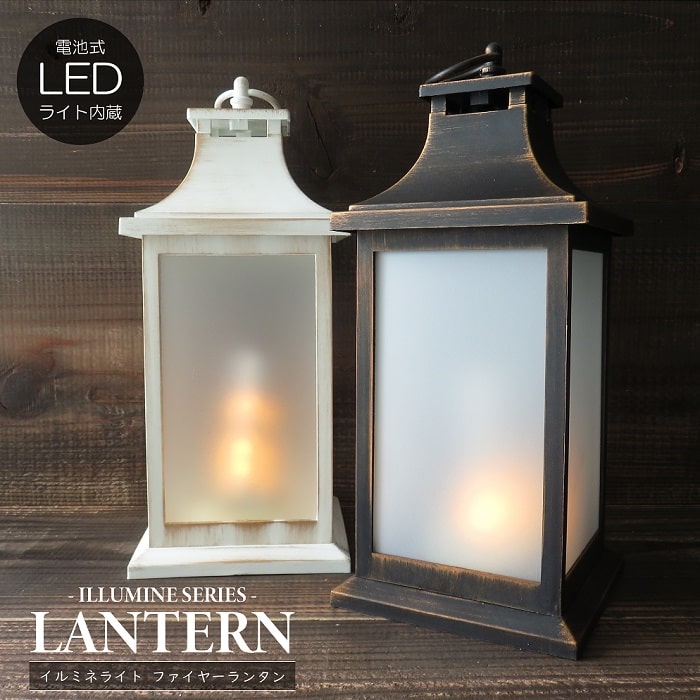 ■LEDランタン 照明 ランタン イルミネライト ファイヤーランタン カーブ 電池式 テーブルライト シャビ― アンティーク調 ビンテージ調
