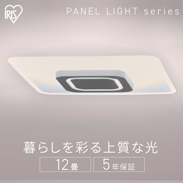 "洗練されたデザイン、均一に届く明るい光"導光板にしかない仕組みが、均一に明るい光をつくりだす。LEDチップが発光→アクリルパネル内で乱反射→パネル表面のドットが乱反射を調整→アクリルパネルが面発光。■適用畳数〜12畳■消費電力45.6W■器具光束5200lm(最大点灯時)■定格電圧AC100V(50/60Hz)■待機電力0.5W■色温度電球色〜昼光色相当■演色性Ra85■発光効率114.0lm/W■製品サイズ(cm)幅約59.8×奥行約59.8×高さ約6.2■製品質量約3.4kg■機能調光/調色:10段階常夜灯:○メモリー点灯:○おやすみタイマー:15分、30分■付属品リモコン、リモコンホルダー、ねじ×2、単4形アルカリ乾電池×2(動作確認用)※LEDモジュール寿命は約40000時間です。LEDが点灯しなくなるか、光束が70%に低下するまでのいずれか短い時間を推定したもので、製品の寿命を保証するものではありません。 & nl*07777