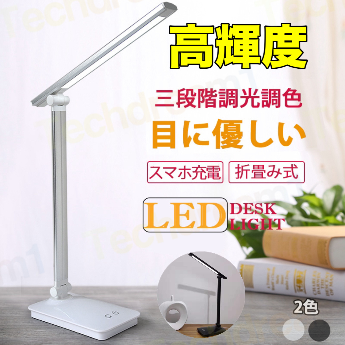 ■即納 LED デスクライト 折りたたみ 目に優しい 電気スタンドライト 調光調色 卓上テーブルライト 照明 読書灯 コンセント付き 子供 USBデ