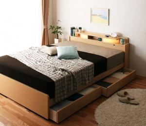 ■セミダブルベッド ナチュラル 収納付きベッド フラップテーブル付き 照明・コンセント・引出し付き ヴィンテージナチュラル ベッドフレ