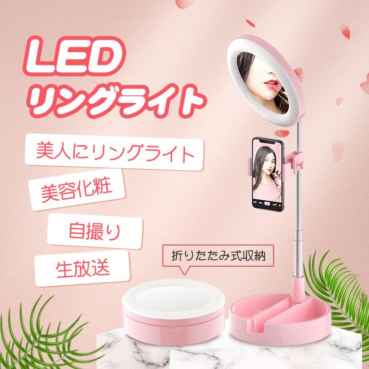 ■LEDリングライト 撮影用ライト USB給電 自撮りライト 自撮り化粧ライト10段階調光 3モード 撮影 照明 コンパクト 軽量 角度調整 美顔 生