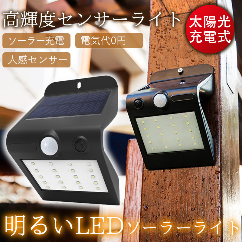■ソーラーライト 屋外 センサーライト 人感センサー 高輝度 照明 ソーラー発電 玄関灯 明るい 防犯 駐車場 自動点灯 LEDライ