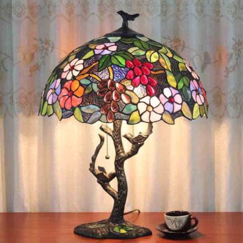 ■ステンドグラスランプ 葡萄 ティファニーランプ スタンド テーブルランプ ヴィンテージ 照明 かわいい ティファニー技法 卓上照明 北欧風