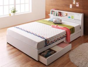 ■セミダブルベッド 白 ホワイト、ダークブラウンから選べる 照明・コンセント付き収納ベッド ポケットコイルマットレス付き
