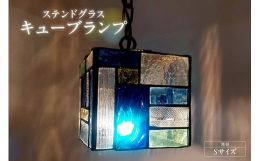 ■【ふるさと納税】ステンドグラス・キューブランプ(S)【寒色】/ インテリア ガラス 照明 ハンドメイド 愛知県