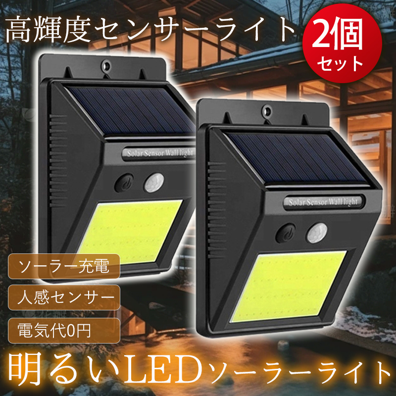 ■ソーラーライト 屋外 2個セット センサーライト 人感センサー 高輝度 照明 COB ソーラー発電 玄関灯 明るい 防犯 駐車場
