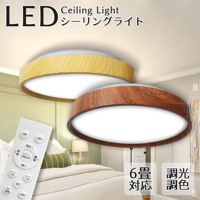 ■ledシーリングライト 木目調 昼光色 電球色 常夜灯 調光 約6畳 工事不要 リモコン付き 照明 天井照明 長寿命 明るい 節電 リモコン 照明