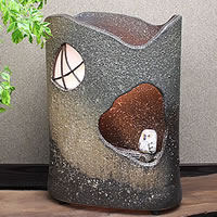 ■照明 スタンド 置き型 陶器 夕暮れフクロウ 幸運 フクロウ ライト インテリア 梟信楽焼 おしゃれ 和風【手作り】