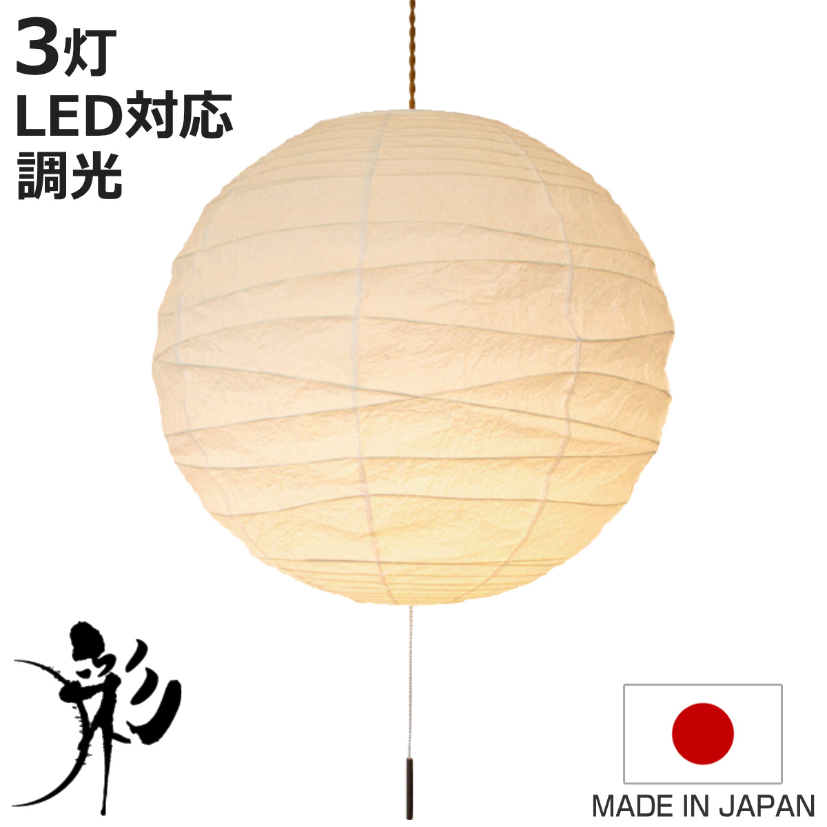 【商品詳細】サイズ/約直径48×高さ24cm内容量/1個生産国/日本製型番/SPN3-1019備考/対応電球:E26/100Wまで(3個)、E12/5Wまで(1個)スイッチ:引き紐式コード長:約50cm目安畳数:約8畳※商品に電球は付属されておりません。※天然素材を使用しているため、写真とは色・サイズ・形等が多少異なる場合があります。※おすすめの畳数表示は、ご使用条件等により異なります。※職人が1点1点手作りで生産しているため、お届けが遅れる場合は別途ご連絡致します。【区分 】返品・キャンセル区分(不可)