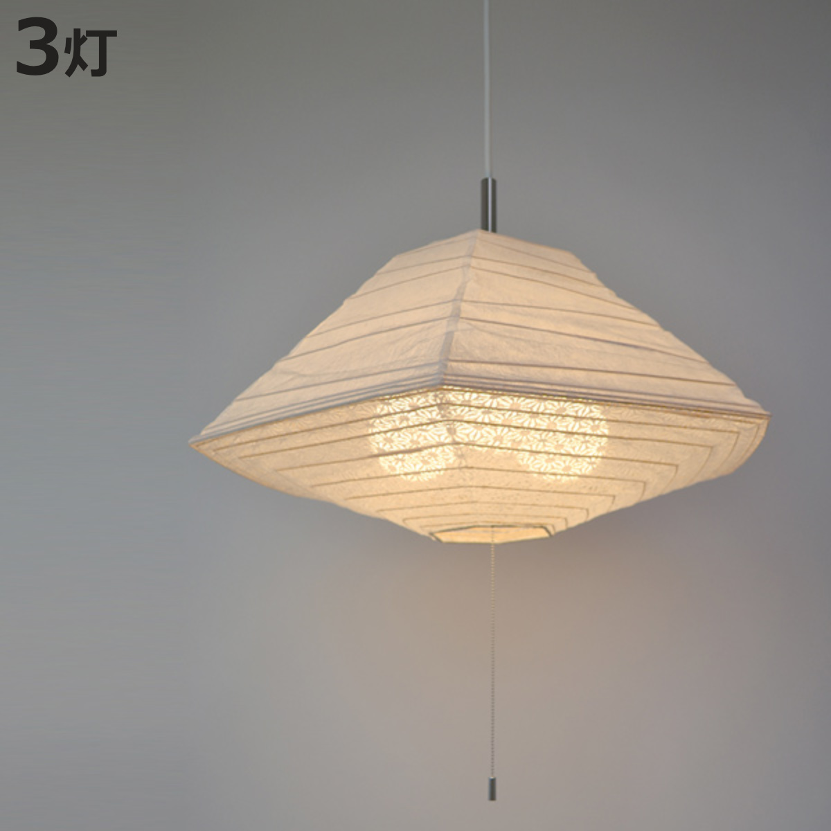 ■ペンダントライト 3灯 和紙 揉み紙X麻葉白 日本製 ペンダントランプ ( 照明 LED 和室 和風 和風照明 寝室 紐付き 引き紐 吊り下げ E26 E