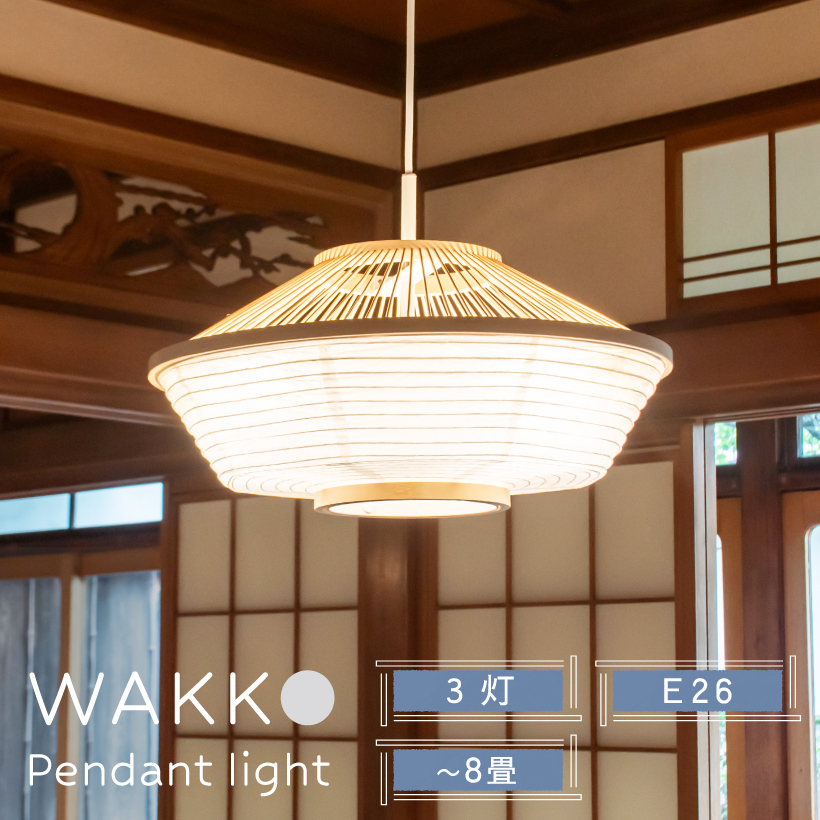 【サイズ】全高:約1535(mm)※コード未調整時 シェード:φ415・H210(mm) コード長:約1120(mm) 【素材】和紙・竹・スチール 【重量】1.22kg 【使用電球】E26(消費電力14W以下のLED電球)×3 【消費電力】最大42W 【電源電圧】交流100V 【取付方法】ワンタッチ取付 【対応畳数】~8畳 【スイッチ】壁スイッチ 【保証】1年間保証 【ご注意】 ※電球は付属しておりません。 ※白熱電球はご使用できません。LED電球専用照明のため、必ずLED電球をご使用ください。 ※ライトコントロール(調光器)やセンサースイッチのある回路ではご使用できません。 ※コードの長さは約1120mmですが、個体差がございます。あらかじめご了承ください。