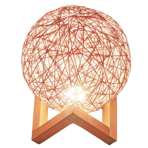 ■PLEAVIT テーブルランプ ベッドサイドライト ラタン 照明 寝室 モダン 和風 丸 球体 月 星 ピンク