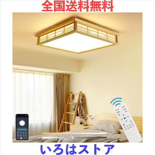 ■LED シーリングライト 寝室 和室 照明 8-13畳 無階段調光調色 インテリアライト 照明器具 実木 和風 リモコン付き APP遠隔制御 天井 間接