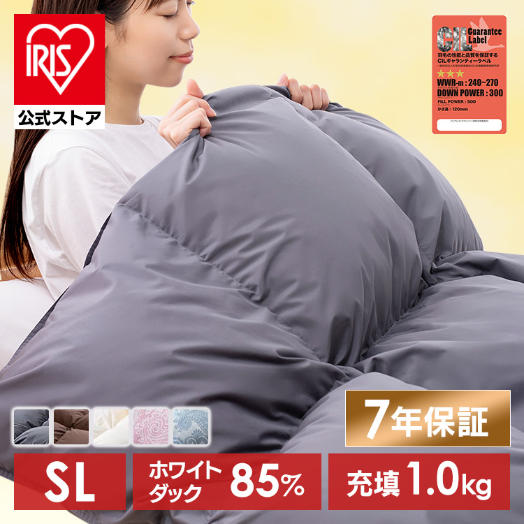 ホワイトダックダウン85% 1.0kg入り羽毛掛けふとんです。 CILレッドラベルを取得しています。 消臭抗菌加工「アレルGプラス」を施しています。 ●商品サイズ(cm) 幅約150×奥行約210 ●商品重量 約1.9kg ●材質 側生地:ポリエステル85% 綿15% 充填物:ホワイトダックダウン85% 1.0kg ※当商品はお取り寄せ品の為、在庫の確認及び商品のお届けまでお時間を頂く場合がございます。 また、商品がメーカーにて完売となっていた場合、キャンセル又は注文内容の変更をお願いいたしております。 予めご了承くださいますようお願いいたします。