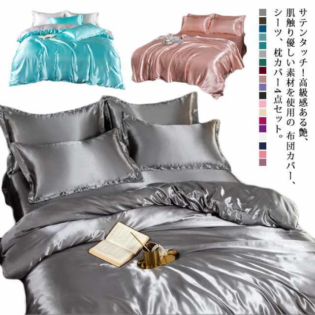 ■布団カバー セット 接触冷感 おしゃれ 4点セット ツルツル 冷感 夏用 光沢 シングル セミダブル 布団カバーセット 掛布団 おしゃれ まく