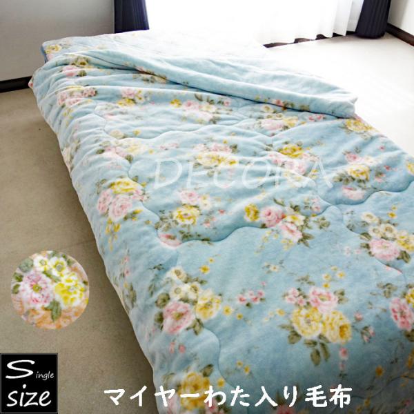 ■(送料無料※北海道・沖縄別途1500円)マイヤー中わた入り毛布 シングルサイズ 柔らかくなめらかな手触り 冬物 暖かい 花柄 掛布団