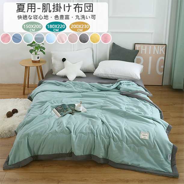 素材 綿・ポリエステル サイズ シングル120×150cm 製品重量 約1.0kg 商品説明 最初からやわらかな肌触りを楽しめるよう洗い加工を施しました。 ・肌掛け布団は、オールシーズンアイテムです。 ・夏の寝冷え対策としてはもちろん、寒い冬場に掛け布団だけでは暖かさが足りない場合に併用したり、 春や秋の季節の変わり目に毛布など組み合わせてもご使用いただけます。 ・気軽に洗えて、乾きやすいから、夏のお手入れも楽々。 ・万が一汚れても大丈夫です!ご自宅で洗えるからいつも清潔! ・軽くてふかふか柔らかい、お肌に優しい ・暑い夏にひんやり心地いい接触冷感素材。