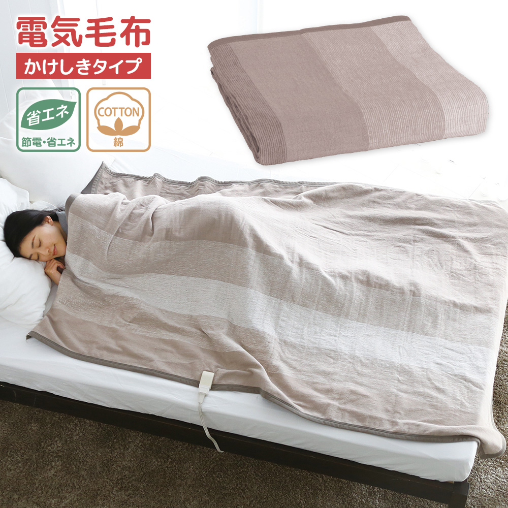 ■広電 電気毛布 CWG551H-C かけしきタイプ 綿 コットン ベージュ 縞 洗える 省エネ パーソナル暖房 掛布団 コウデン