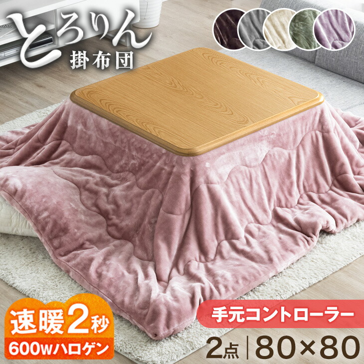 ■速暖2秒! こたつ 2点セット 高さ調節 600Wハロゲン こたつ + 洗える 掛布団 80×80 正方形 家具調 こたつセット シンプル 北欧 おしゃれ