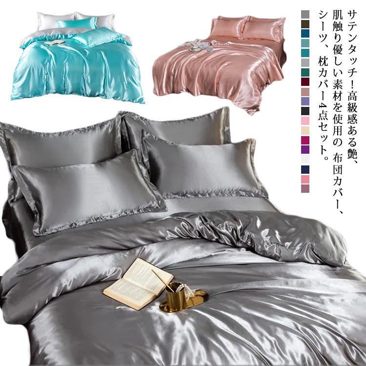 ■布団カバー セット 接触冷感 おしゃれ 4点セット ツルツル 冷感 夏用 光沢 シングル セミダブル 布団カバーセット 掛布団 おしゃれ まく