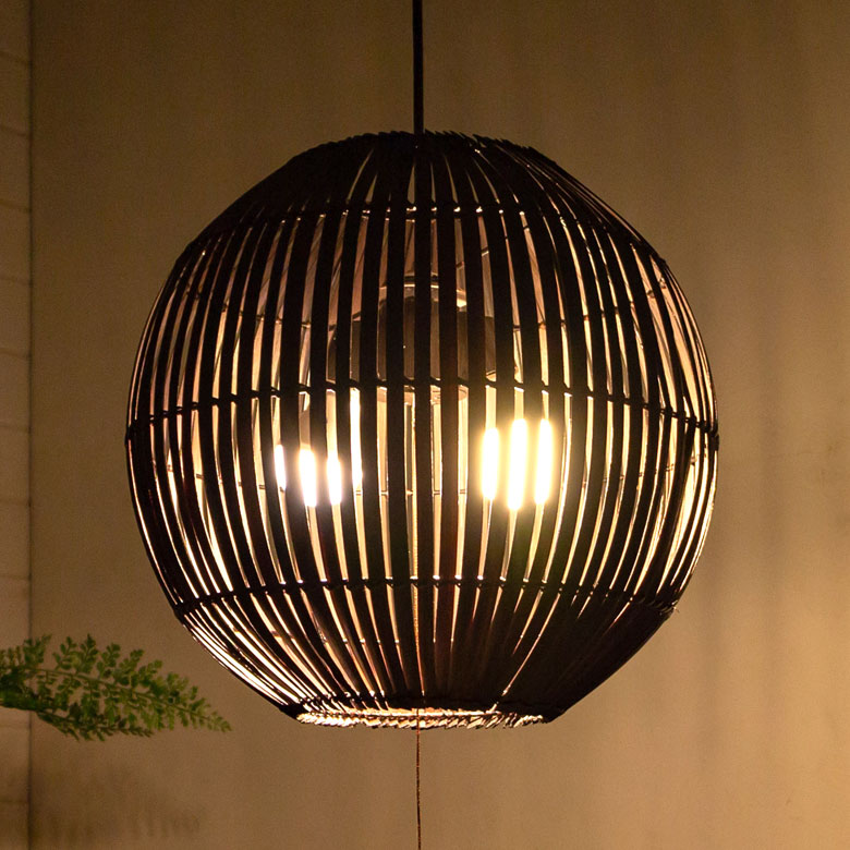 丈夫なラタン(籐)素材を活かし、スチールの骨格に合わせてぐるぐると組み上げた、職人の技術が光る逸品。ラタンの編み目から溢れる陰影が、情緒あふれるアジアン空間を演出します。深みのある落ち着いた風合いは、アジアンリゾートのインテリアはもちろん、和風、モダンな空間など幅広い空間にマッチします。バリ島の夜を思わせる優しい灯りで、癒しのひと時を。■サイズ(cm):約 W 40 × D 40 × H 22※多少サイズは前後します。■重量:約 1kg■素材:ラタン、スチールフレーム■生産国:バリ(インドネシア)■付属品:2灯ペンダント用ソケットケーブル(長さ約0.5m) 引掛シーリングタイプ■備考:・電球:口金E26サイズ(2個ご用意ください)ソケットはPSEマーク取得済・豆電球:口金E12サイズ※100Wまで。※熱くならないLED電球を推奨します。※電球は別売りです。・コード:長さ約50cm、プルスイッチ付き■ご注意:商品ページ内「ご注意」をご覧ください。