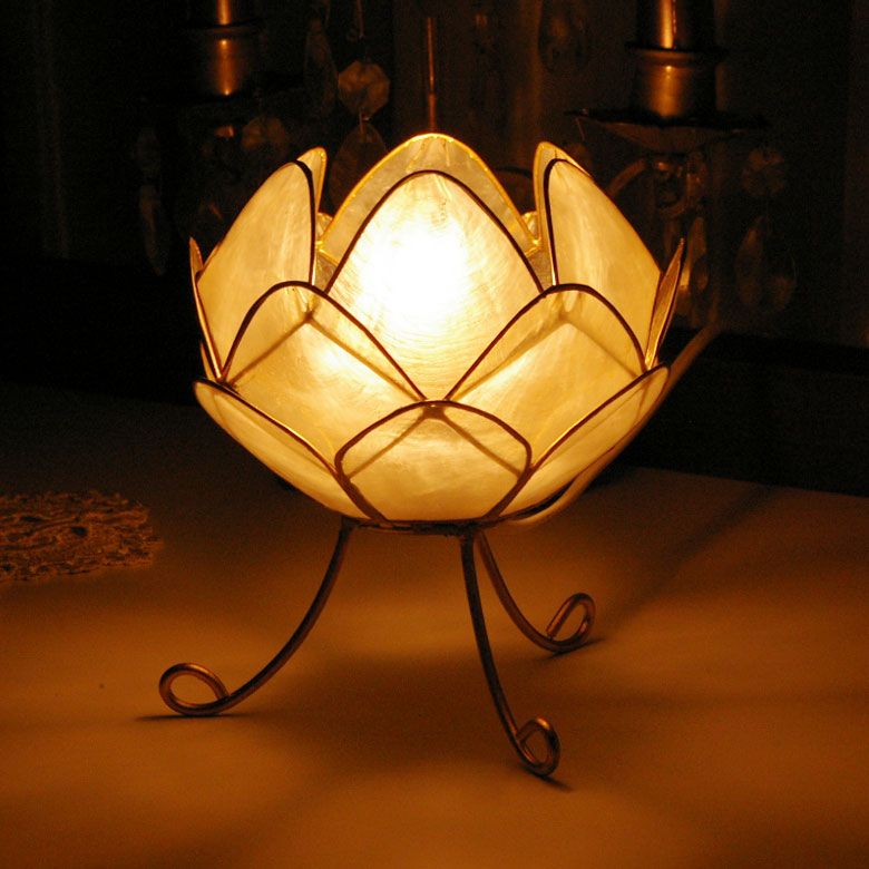 ■アジアン雑貨 蓮をモチーフにしたカピスシェルのフラワーランプ 10290