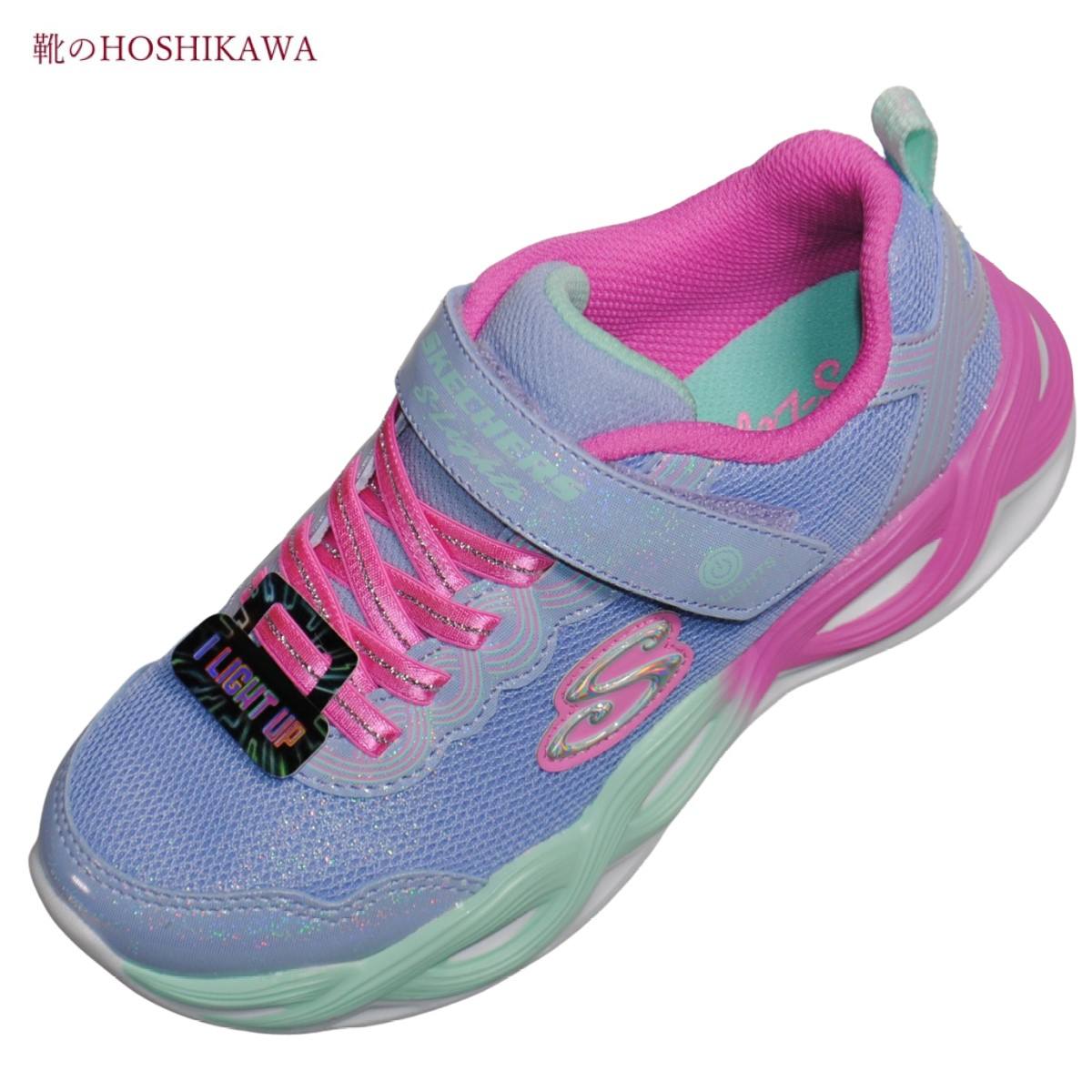 ■SKECHERS S LIGHTS 303717 16.5cm〜24cm キッズ スケッチャーズ フラッシュシューズ ペリウィンクル/マルチ 女の子 マジックテープ 合皮