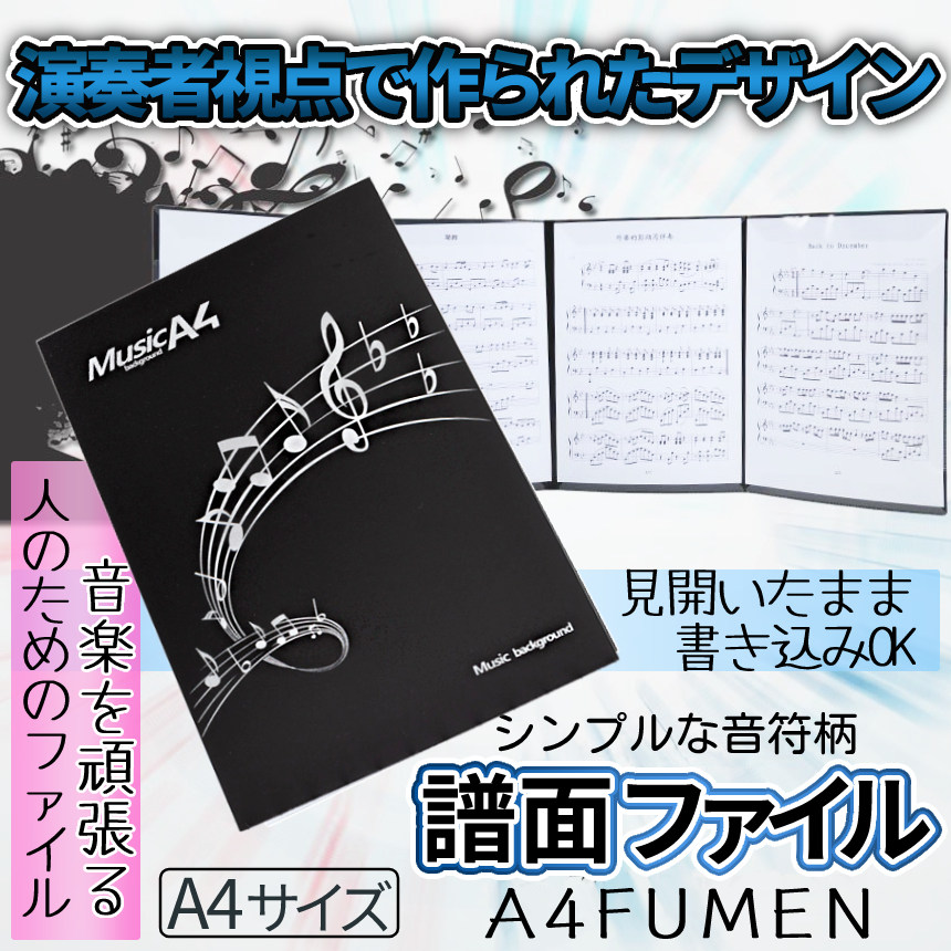 ■楽譜 ファイル 譜面 カバー 見開き 4面 最大 6枚 収納 書き込み A4 サイズ ピアノ 音楽 教室 演奏 部活 吹奏楽 レッスン 練習 発表会 ラ
