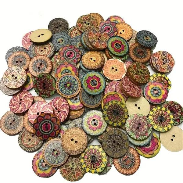 ■カラフルな塗装された木製のボタン ヴィンテージの木製の装飾ボタン 縫製工芸品 DIY 20mm 100個