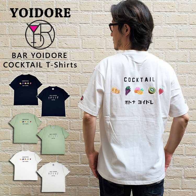 多数のご希望にお応えして遂に登場!カクテルTEE!! 薄暗い間接照明の落ち着いた空間で大人の色気を出しながらエレガントにカクテルをたしなむ。 うーん大人ですね〜! そんな雰囲気とはうらはらにカクテルのカラフルなカラーリングがとってもポップなデザインに。 バックはそれぞれのカクテルのテイストフルーツが刺繍で配置されキュートな仕上がりです。 ややゆったりめのルーズなシルエットは適度なリラックス感があり、 ラフな呑みシーンでのコーディネートに取り入れたいマストなアイテムです。 全ての商品にシーズン毎にデザインが変わる限定ステッカー付き。 ーYOIDORE− 酔いどれ( 酔っ払い) に届ける、酔いどれ( 酔っ払い) の為のブランド。 お酒をテーマにした様々なデザインを落とし込んで展開。 気鋭のアーティストや酒造メーカー、人気ショップとのコラボレーションや、 型にはまらない独特の世界感を表現した新感覚のアパレルブランドです。 老若男女お酒好きな方、お酒のお供にいかがでしょうか。