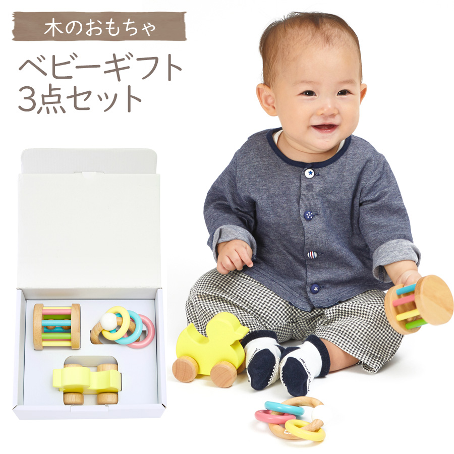 ■おもちゃ ベビーギフト3点セット(アヒル) 知育玩具 木のおもちゃ 赤ちゃん 1歳 6ヶ月 男 女 ラトル ハーフバースデー 出産祝い 誕生日